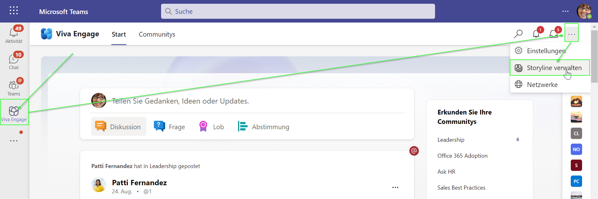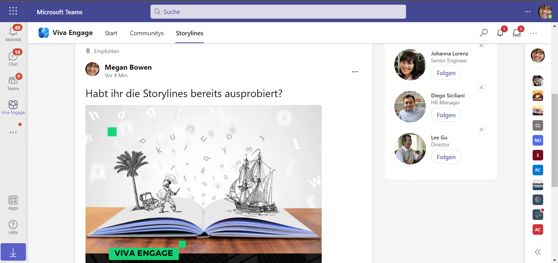 Viva Engage delivers a new feature called «Storylines», with this Microsoft follows the trend of follow / be followed also in corporate communications.