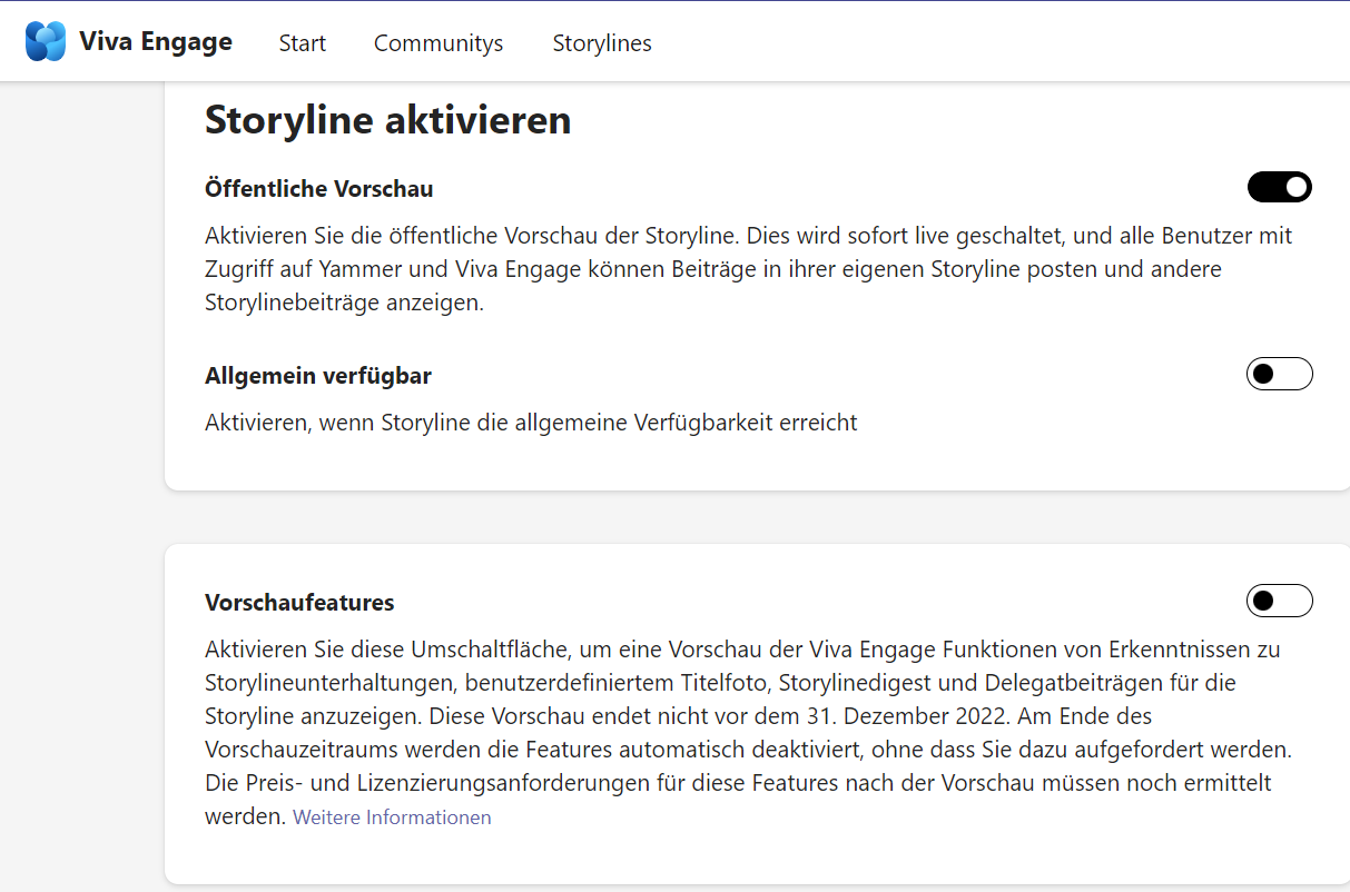 Some time ago it was announced that the Teams app «Communities» would be renamed «Viva Engage». This brought Yammer and Viva Engage back into focus in the Microsoft 365 environment. So it is not surprising that the first new functionalities are available. In this post, I give a first overview of the Storylines feature.