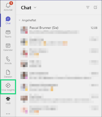 1. Zu aller erst musst du sicherstellen, dass du die Viva Insights App in deinem Teams hinzugefügt hast. Klicke hierzu auf die «…» in der Navigation auf der linken Seite. Danach gibst du im Suchfeld «Viva Insights» und fügst die App hinzu.