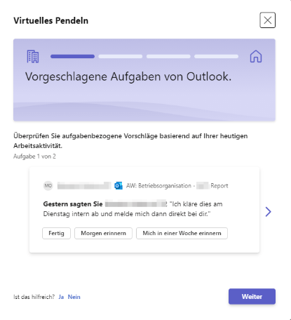 Für viele Personen war das Pendeln ein wichtiger Bestandteil des Feierabends. Durch Homeoffice fällt dies jedoch komplett weg. Dank Microsoft Viva Insights, hast du nun die Möglichkeit des virtuellen Pendelns.