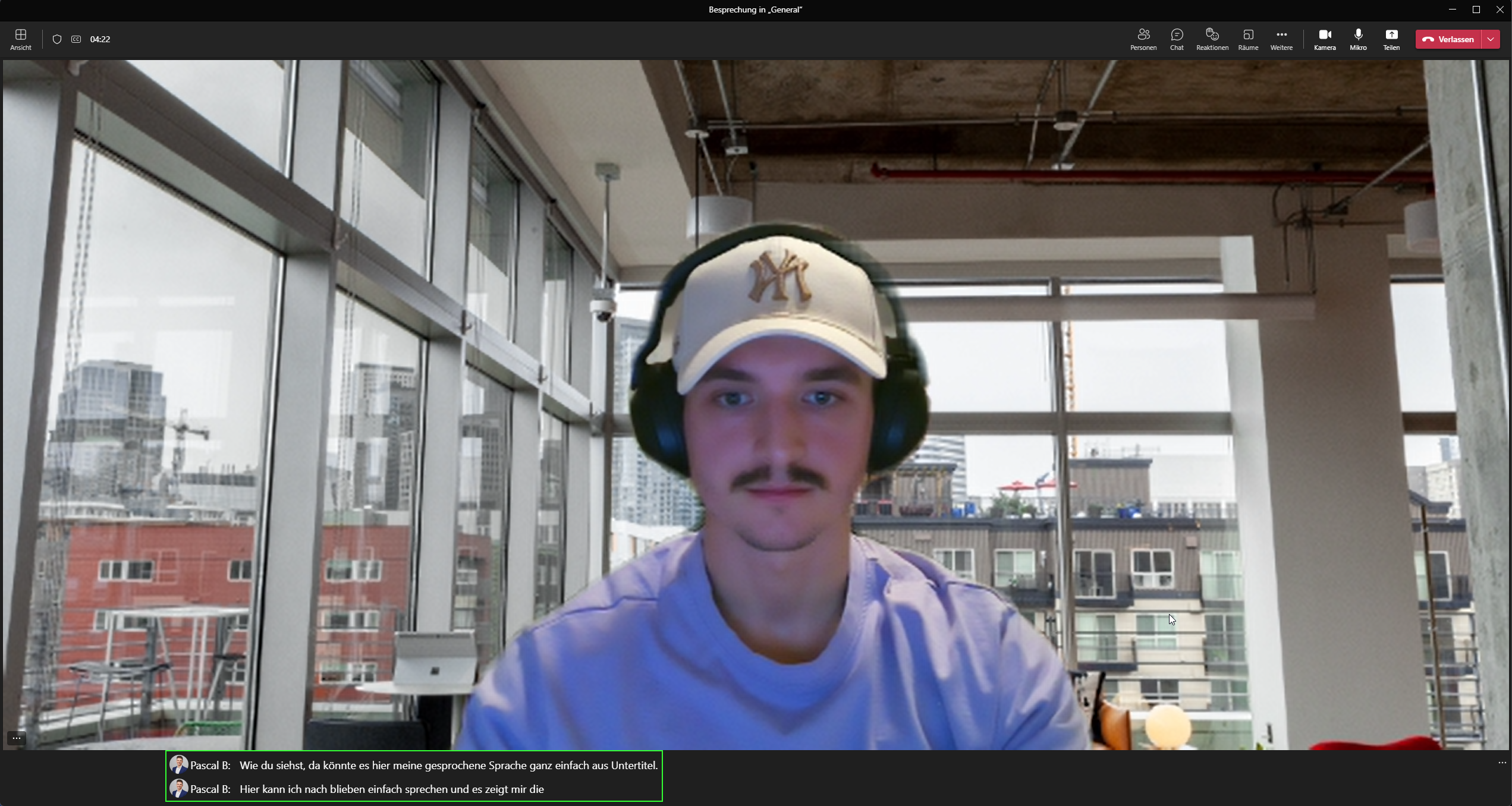 Microsoft Teams liefert dir die Möglichkeit das Gesprochene in eine Sprache automatisch übersetzt als Untertitel anzuzeigen.