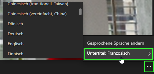 4. Zusätzlich hat noch jede:r Teilnehmer:in die Möglichkeit, den Untertitel auf eine beliebige Sprache zu übersetzen. Diese Anpassung ist jeweils nur auf sich selbst bezogen. Die Übersetzung wird automatisiert vorgenommen und ist ein echter Game-Changer für Online-Meetings.