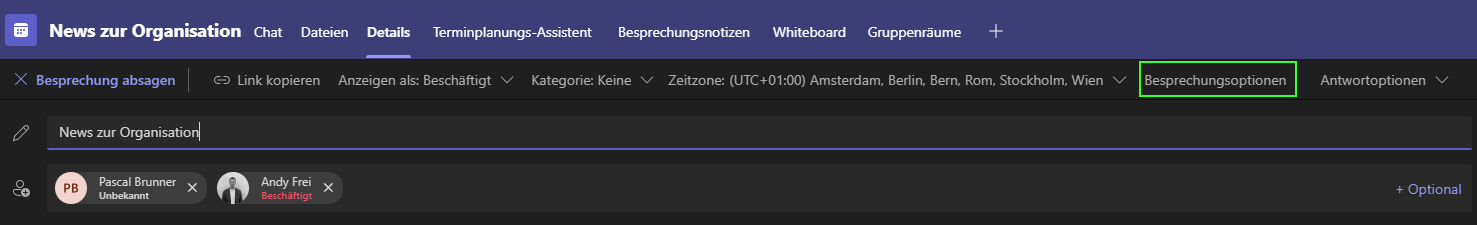 2. Wechsle nun auf die Besprechungsoptionen des Meetings.