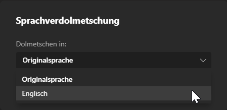 Microsoft hat diese Problem erkannt und liefert nun eine neue Funktion in Teams. Die Live Meeting Übersetzung ermöglicht es den Organisatoren übersetzende Sprachen zu definieren. Diese Übersetzung wird dann Live während dem Meeting von Dolmetscher:innen vorgenommen. Alle Teilnehmende können von den angebotenen Sprachen auswählen und dadurch idealerweise in ihrer Muttersprache das Meeting verfolgen.